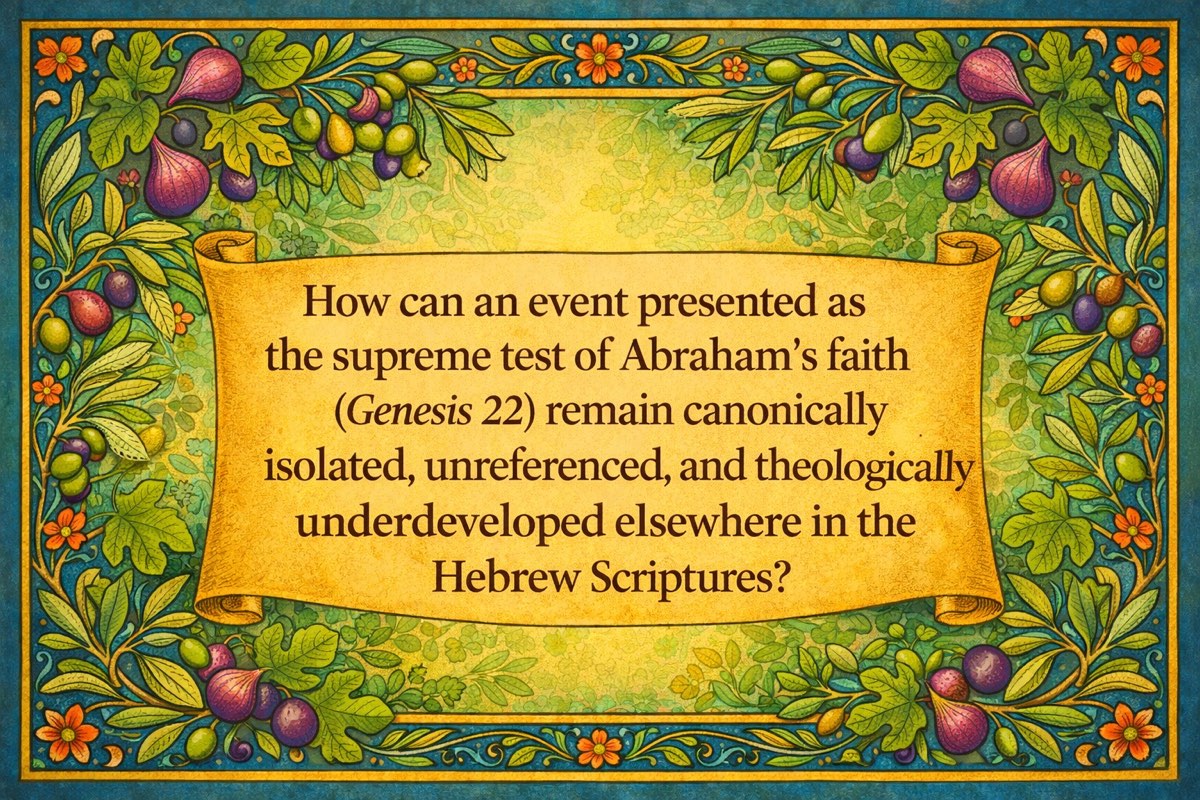 The isolation of Genesis 22 creates a deep semantic fracture. If Abrahamâs willingness to sacrifice Isaac represents the apex of faith and obedience, why is this episode never integrated into the broader theological discourse of the Hebrew Bible? In other words, how can an event presented as the supreme test of Abrahamâs faith remain canonically isolated, unreferenced, and theologically underdeveloped elsewhere in the Hebrew Scriptures?